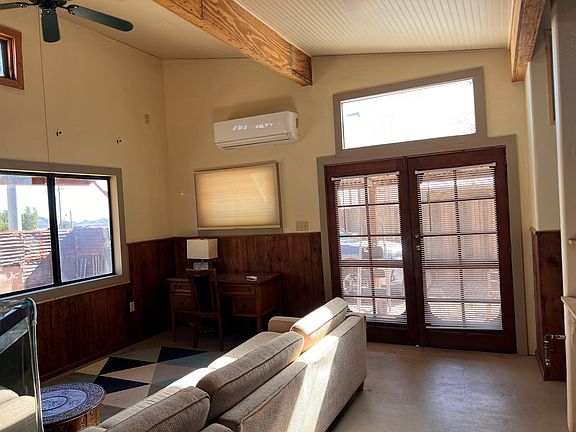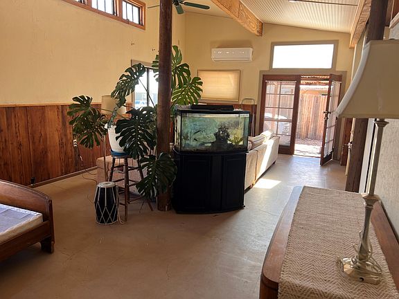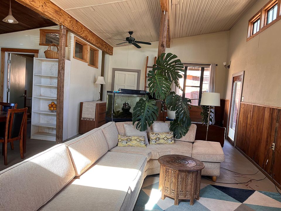 Beautifully furnished Loft-style home all one open living space. Lots of light. No separate bedroom. New appliances, cold A/C, fenced yard, storage unit/workshop. Everything you need to move right in. Perfect for single person or couple. References. Small dog OK.