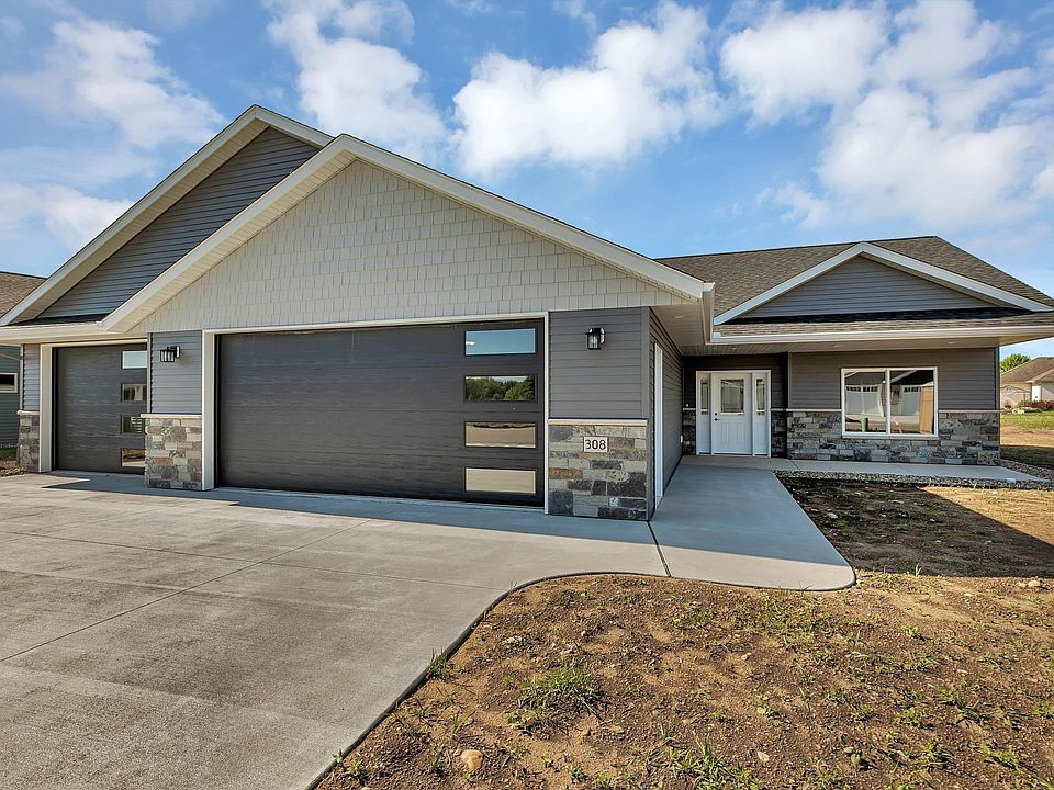 Appliance allowance--1696 square foot patio home with 3 bedrooms, 2 baths, fireplace, custom cabinets, triple garage, furnace and in-floor heat. All facilities on one level.