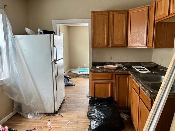 Back on the market and priced to sell. Property is set up currently as a duplex and could be a great rental opportunity with its location close to downtown and the schools. Main floor has two bedrooms and one full bath while the upstairs has one bedroom, a full bath, living space, and a kitchen. Property is being sold as is and will need major TLC throughout.