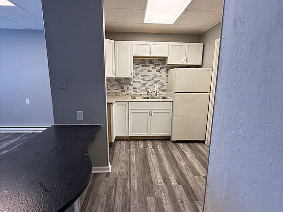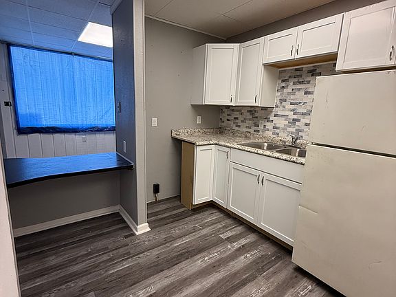 This studio apartment offers an efficient layout with a versatile bonus room. The main living area features updated flooring, a modern kitchen with white cabinetry and tile backsplash, and an open layout that provides flexibility for your living and dining arrangements.