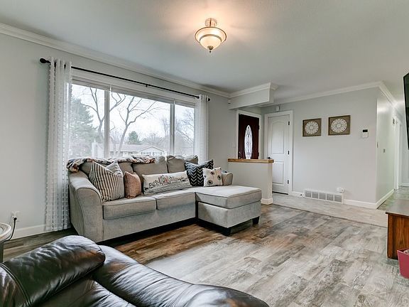 This charming ranch home, located in a mature neighborhood, offers a comfortable and functional living space with an open floor plan and modern updates. The main level features durable LVP flooring and tile throughout. The cozy family room, just off the kitchen, creates a perfect space for relaxation, while the formal dining area is ideal for entertaining. The primary bedroom includes a private half bath for added convenience and privacy. Outside, a newly added two-tier patio provides a great spot for outdoor living and gatherings. The detached two-car garage offers plenty of room for both vehicles and additional storage. The finished lower level adds even more space to this home, with a large family room, a spacious bedroom, a ¾ bath, and a laundry room with plenty of storage options. Situated in a peaceful, mature neighborhood, this home is the perfect blend of comfort, style, and convenience.