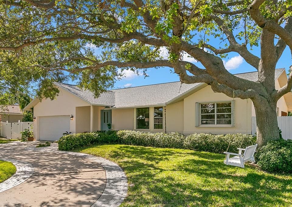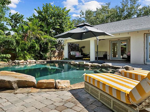 When you Dream of having a home in Florida, do you dream in Black and White? No, of course not! This Tierra Verde Pool Home brings those Technicolor Dreams to reality with Bold Stripes and Tropical Prints, deep hues of Pinks and Blues, layered in Texture and Sunlight. Located on a quiet street, the front of this well-maintained home is shaded by oaks, creating a warm and welcoming appeal. The foyer introduces shades of blue through the living room or game room, with the kitchen at the center of two dining spaces. This updated chef space has white shaker cabinets, cool quartz countertops, and a warm butcher block island. Serve guests at the kitchen island, the breakfast nook, the dining room or poolside with three sets of French doors leading to the pool and lanai. The split bedroom plan lends privacy to residents and guests. The primary suite has plenty of room for a sitting area or home office space, walk-in closet and ensuite bath. The second and third bedrooms share an updated bath with a glass enclosed tiled shower. You can also access this stylish bath from the pool and lanai. The free form pool is stunning, wrapped in natural stone and Florida native plants, creating a vacation vibe in your own backyard. The large lot lends space for a firepit, lawn games and pets. A long list of updates includes a new roof in 2024. Kitchen cabinets, countertops and appliances, AC, flooring, guest bath and pool equipment all new in 2022. Located in the southern tip of Pinellas County, Tierra Verde offers a multitude of activities for the outdoor enthusiast, nearby shopping and dining in Tierra Verde and Isla Del Sol, a quick ten minute trip to the gorgeous Gulf Beaches or Chic Downtown St. Petersburg museums and restaurants, as well as easy access to the interstate and airports. This home and neighborhood weathered the storms well without any flooding!