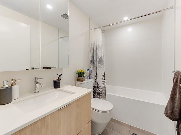 This brand-new, south-facing one-bedroom at Anthem’s SOCO is bright, modern, and move-in ready. The open dining and living areas offer beautiful city, greenery, and water views. The spacious kitchen comes equipped with an integrated Bosch appliance package, including a gas cooktop. Enjoy modern comforts throughout the home such as roller shades, laminate flooring, quartz countertops, a deep soaker tub, and a heat pump providing year-round heating and cooling. SOCO offers an exceptional lifestyle - just minutes from Lougheed Mall, the SkyTrain, and Burquitlam. Residents also enjoy impressive amenities including BBQ areas, guest suites, a basketball court, a playground, and beautifully landscaped gardens.
