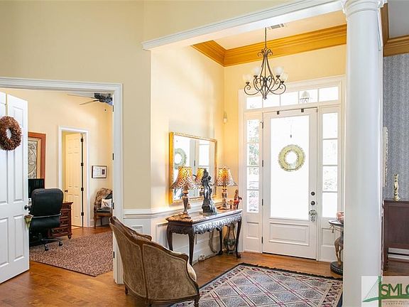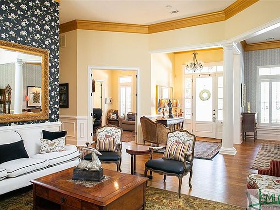 Phenomenal custom-built 4 bedroom, 5 ½ bath Landings home that exudes Southern charm and entertaining at its finest with its 560 square foot enclosed porch with ventless fireplace and travertine floors and its paver Pergola with outdoor kitchen. Inside the home welcomes you with hardwood floors and custom millwork. Large dining room for dinner parties, living room with fireplace, custom kitchen with island and beverage station that features a Miele built-in coffee maker, warming drawer, microwave, and wine cooler. Morning room with fireplace and breakfast area complete the kitchen that opens to the porch. Split bedroom plan with 3 guest bedrooms each with own bath. Large master suite with cove lighting and updated master bathroom. Fabulous bonus room with bath and finished heated and cooled attic that offers copious storage. The 3-car garage plus golf cart space is unmatched with its built-in storage cabinets. Upgrades galore!