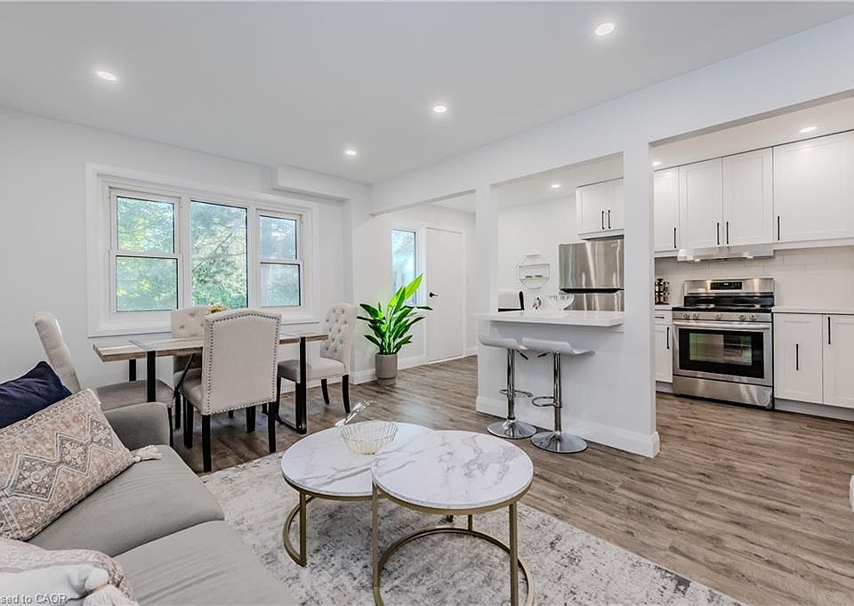 Nestled in the heart of desirable Lincoln Heights comes a rare and truly special find ready to welcome its new owners. This spectacular home wows from the very first impression. Upon entering it's not hard to see what sets this beauty apart - this 1888 sq ft home has been completely renovated with high-end finishes and thoughtful details throughout. An open concept living space welcomes you through the bright and spacious living room into an impressive chef's kitchen overlooking the rear yard. Your kitchen showcases a quartz-top breakfast island, brand new SS appliances, undercounter lighting and ample cabinetry. Step out onto your private backyard patio surrounded by mature trees and serenity. Before making your way to the second level be sure to check out the stylishly decorated powder room and direct access to the garage. Upstairs you will find 3 generous bedrooms and 2 full baths. Your primary suite is an expansive oasis full of natural light, boasting an XL closet, a luxury 3 piece ensuite bathroom and a built in nook for an office or make-up station making this space extra functional. The living space extends to the lower level with a large rec room with a cozy fireplace, a large storage room and access to laundry. This home has been completely renovated top to bottom with new kitchen and baths, closets, electrical, flooring, and lighting throughout. There is also a brand new garage door, new AC (2025) and newer windows on main floor. Not only does this neighbourhood offer a sense of community, tree-lined streets, and top schools, it also offers direct access to highways, shopping, community centres and ample parks. Come and see why this move-in ready unit is the best home for your family!