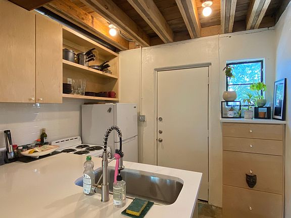 Gorgeous remodeled boutique apartment complex. Huge beautiful shower, sliding closet door, cemented floors, curated shelving to fit more in a quaint space. Appliances include, refrigerator, stove, washer and dryer.