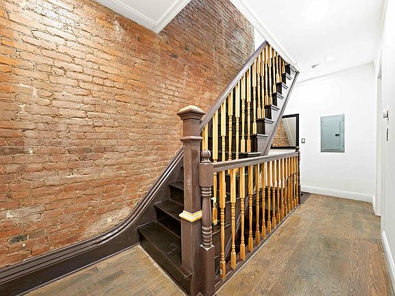 - *Grand layout* across three levels with high ceilings and exposed brick
