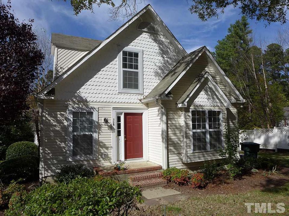 House in Carrboro. Living room features a ceiling fan, laminate floors, and is open to kitchen. Kitchen has ample cabinets, a serving bar, laminate floors, and appliances. Kitchen open to dining area also with laminate floors. 2 bedrooms & a bathroom down & 2 bedrooms & bathroom up. All bedrooms have ceiling fans, carpet. Washer/dryer on main. Fenced back yard with patio. 1 indoor pet considered w/fee & approval. $15/mo filter fee.