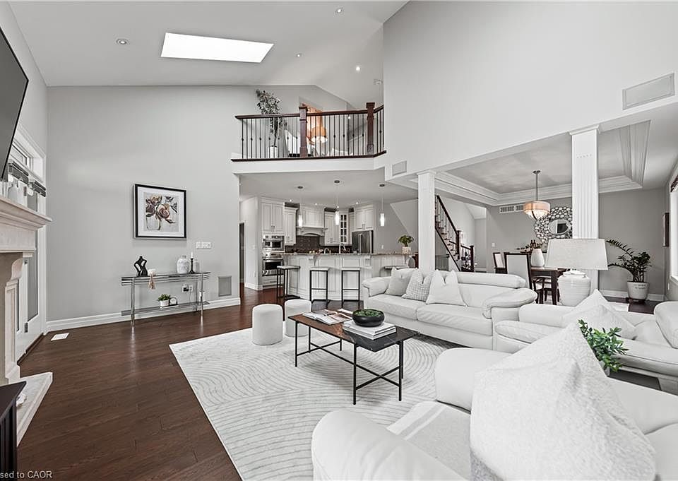 A rare opportunity in prestigious Carriage Crossing! This spectacular custom-built executive bungaloft is one of few in the neighbourhood, offering the perfect blend of main-floor convenience & two-storey design. With 4+1 bedrooms, 4 bathrooms & over 4,300 square feet of finished living space, this home is filled with thoughtful upgrades & timeless finishes throughout. A welcoming main entry with soaring ceilings opens to an elegant open-concept layout. The chef’s kitchen features granite countertops, a breakfast bar, pantry, backsplash & five high-end stainless steel appliances. The kitchen flows into a formal dining room with a double tray ceiling, & seamlessly into a grand great room with vaulted ceilings, a stone-cast gas fireplace & direct access to the covered porch & patio. The luxurious main-floor primary suite offers a tray ceiling, walk-in closet, private access to the backyard & patio, & a spa-inspired 5-piece ensuite with granite counters, heated floors, tiled glass shower & jacuzzi tub. A second main-floor bedroom/home office includes a tray ceiling & custom built-ins. A mudroom & 2-piece bath completes this level. The upper loft features two spacious bedrooms, a 4-piece bathroom & a lounge area. Designer lighting, pot lights, hardwood flooring & porcelain tile, fresh paint, new carpet & updated finishes are showcased throughout. The fully finished basement expands the living space with a large recreation room featuring a gas fireplace with ledgestone surround, a wet bar, games area, fifth bedroom, 4-piece bath, exercise area, full laundry room & abundant storage-potential for in-law/multi-gen living. Outside, the professionally landscaped grounds offer an aggregate driveway, fenced yard, covered porch, large patio, mature trees & perennial gardens. Walk to RIM Park, Grey Silo Golf Club, scenic trails & top-rated schools. Just minutes to universities, workplaces, markets, shopping & convenient HWY access. This is an exceptional home not to be missed.