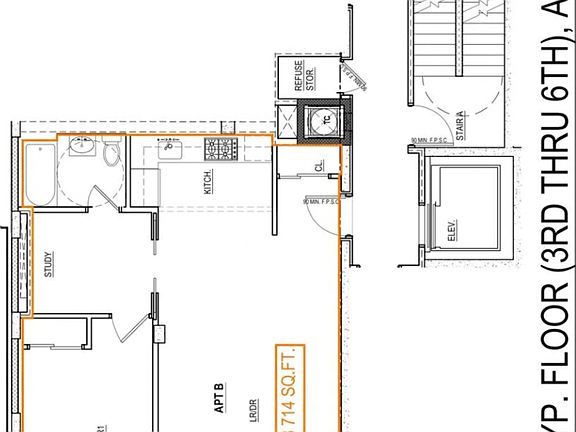*Bonus area between the bedroom and bathroom that tenants have used as a dressing area, storage, or office space (see "study" on the floor plan)