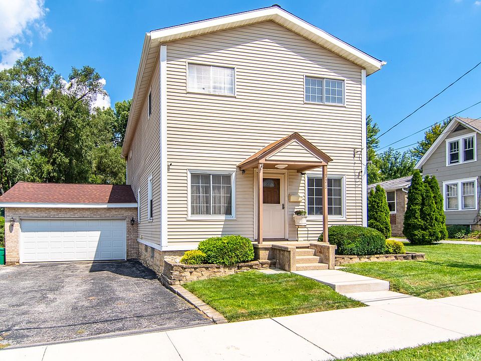 NEW TO MARKET IN POPULAR LOCKPORT'S HISTORIC DISTRICT! ROOMY FARMHOUSE STYLE HOME W/PARTIAL BRICK EXTERIOR, & FEATURING 4 BEDROOMS & 2 BATHS! LIVING ROOM W/BRICK WOOD BURNING FIREPLACE - SPACIOUS KITCHEN W/HARDWOOD FLOORS, CENTER ISLAND & EATING AREA & FRENCH DOORS LEADING TO LARGE DECK W/STARS LEADING TO BRICK PAVER PATIO & FENCED AREA. YARD CONTINUES PAST THE FENCE & JUST BEYOND THE TREE LINE. MAIN FLOOR BEDROOM OFF LIVING ROOM & FULL BATH OFF KITCHEN. 2ND FLOOR FEATURES LARGE MASTER BEDROOM W/SHARED MASTER BATH W/WHIRLPOOL TUB & SEPARATE SHOWER. OPEN HALLWAY LEADS TO 2 OTHER BEDROOMS - BEDROOM 3 W/WIC. THERE IS A STONE BASEMENT & 2 CAR ATTACHED GARAGE. NEW ROOF OVER GARAGE (2019) A/C PARTS WERE REPLACED (2019) FRIDGE/STOVE NEW APPROX (2020) 50 GALLON WATER HEATER (NEW 2012) WALKING DISTANCE TO ELEMENTARY SCHOOL - MINUTES TO TRAIN STATION.