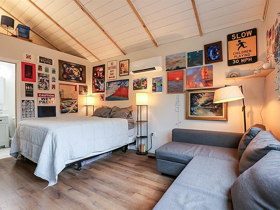 Wonderful natural lightWaterproof laminate wood-like flooringTile in the bathroomPrivacy fenced backyardVaulted ceilingsCeiling fanPeaceful modern studio retreat