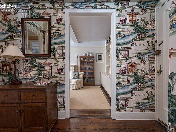 You enter the apartment through a spacious foyer which has been thoughtfully decorated with Scalamandré wallpaper, setting the tone for this chic apartment designed by Keith Irvine. Off of the foyer, an oversized living room offers ample space for entertaining and can easily accommodate a dining table with room for 8. The fully renovated windowed eat-in kitchen is outfitted with top of the line appliances; Wolf oven, Bosch refrigerator and microwave, and Miele dishwasher.
