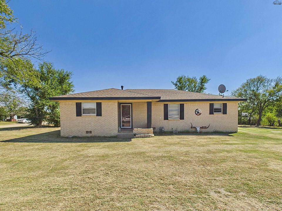 Enjoy peaceful rural living just 25 minutes from Wichita Falls! This charming brick home has been thoughtfully updated with a new roof, HVAC, electrical box, flooring, and paint. The spacious yard is fenced in two sections for flexibility, and the brand-new storage shed with electricity is perfect for hobbies or extra space. Relax on the large covered back porch and take in the quiet country evenings—this home is a true country gem!
