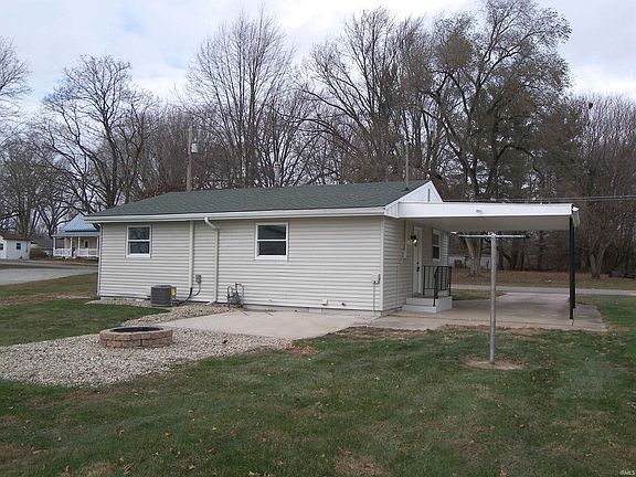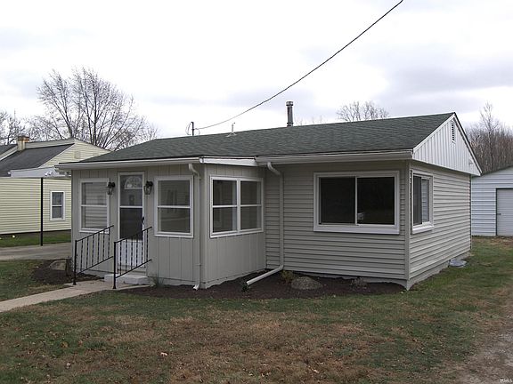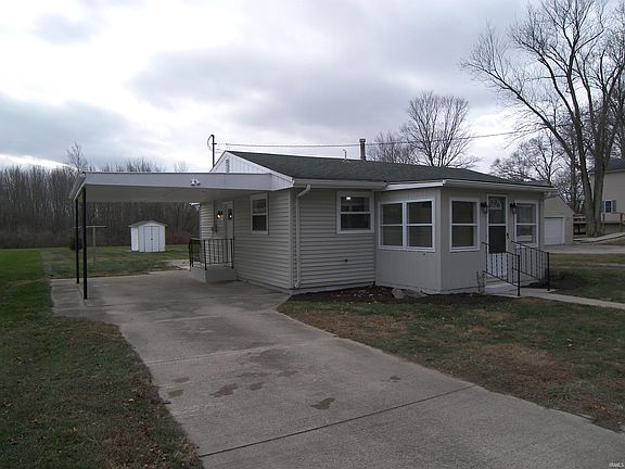 Immediate possession available with this remodeled vinyl sided 2 bedroom home with attached carport and detached garage at the southeast edge of Pierceton. Enclosed front entry porch, open main living area (living room, dining area, kitchen), side entry laundry room with easy access from the attached carport to the kitchen for convenience and ease of carrying groceries. Amenities include: insulated windows, remodeled bathroom, fresh interior paint, new vinyl plank flooring, new light fixtures, new Carrier high efficiency GFA furnace, new Carrier 13 SEER central AC, new water heater, modern breaker box, new PEX plumbing, NIPSCO gas & electric, city water & sewer. Level full sized city lot, 12x12 rear concrete patio with fire ring and a storage shed. The detached 25x24 metal built garage was constructed in 2012 and offers an overhead roll up door, side service door, concrete floor, insulation and an electrical sub panel. Affordable housing in a low traffic location in the rural community of Pierceton, just a short commute to downtown businesses, major employers and the popular lakes area.