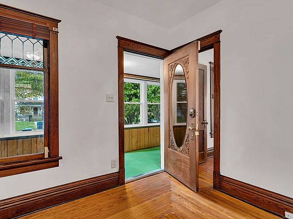 Charming 3-Bedroom Ranch with Original Character and Modern Comforts! Welcome home to this inviting 3-bedroom, 2-bath ranch perfectly situated on a quiet street just minutes from downtown shops and restaurants. Enjoy morning coffee or evening relaxation in the enclosed front porch before stepping inside to a spacious living room filled with natural light and timeless charm. The separate dining room and two comfortable guest bedrooms feature beautiful original hardwood floors, solid wood doors, and rich trim that showcase the home's classic craftsmanship. The large, well-designed kitchen offers abundant cabinet and counter space-perfect for cooking, entertaining, or gathering with family. A full guest bath is conveniently located near the secondary bedrooms, while the private master suite, tucked away at the opposite end of the home, includes an attached master bath for added comfort. Additional highlights include a main-floor laundry area, a full basement ideal for storage or potential finishing, and a detached 2-car garage. This home offers a blend of character, functionality, and convenience in a peaceful neighborhood setting close to all the amenities of downtown living. Don't miss your chance to make this charming ranch your new home!