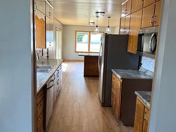 Nice brick ranch home sitting on a great size level lot w/an additional 30x40x12 shop w/2 10 ft doors & an 8 ft door! The home boasts of 3 bd w/wood floors that have been refinished w/2 of the bd at the North end of the home & the primary bd & bath at the South end of the home! In between we have a huge living room that has a variety of ways to set up your furniture. The kitchen is a galley type w/new countertops & a bar to sit at to eat as well. The home has 2 dining areas at either end of the kitchen. The dining room on the North side is a good size formal room & the South side of kitchen would be great for breakfast & everyday family eat in. This home has been remodeled w/a newer hvac system, windows, paint, vanities in baths as well a shower in primary & tub/shower in general bathroom!