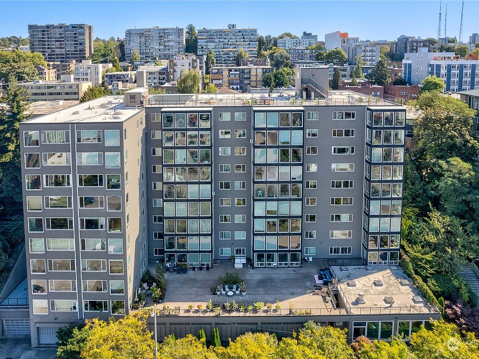 Stunning & rarely available 2 bedroom corner unit @ Melrose Terrace! Gorgeous open floor plan! Living & dining areas have unique wall features including beautiful electric fireplace! Miele & Wolf appliances including coffee machine in kitchen! Large bath w/ heated floors & multi function shower! Tech lighting. Lovely large indoor pool. Fabulous rooftop deck w/ panoramic views! Enjoy BBQ's, relaxation & fireworks. Parking guaranteed $65/month. Amenities include guest parking, guest apt, storage, gym, party, automatic ADA lobby door & more! The building is solid concrete & steel construction. HO Dues include Property Taxes. Owner occupants only. Co-op financing available. Excellent on-site manager! SLU & Light Rail close by. Walkscore of 92!