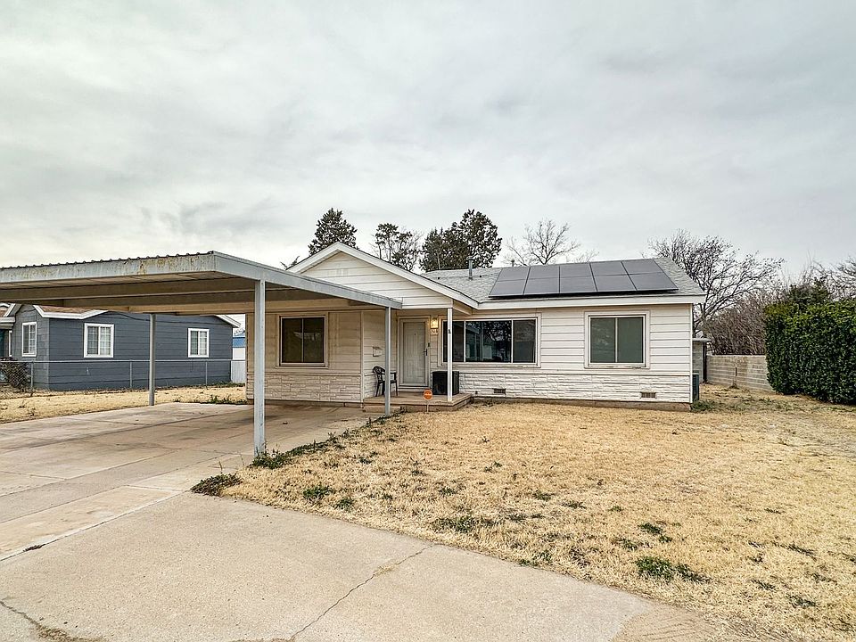 Check out this 3 bedroom 1 bathroom house for rent! This house has a low electric bill due to the property having solar panels. This house comes with appliances in the kitchen, a carport, and a storage unit. Additionally, the home offers a whole home water softener system and reverse osmosis system for drinking and cooking water.