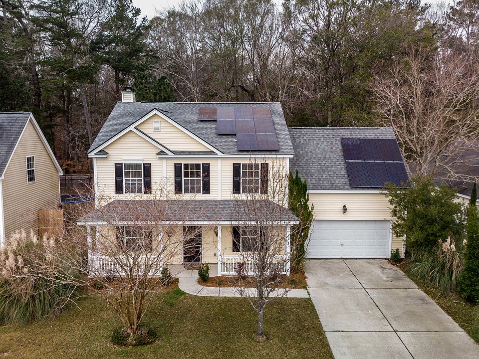 Welcome Home! This home is truly move-in ready; new roof with architectural shingles in Sept 2019, the carpet replaced at the end of 2019, and the guest bedrooms and frog were repainted in January 2020! There's nothing left to do but move in. The solar panels you see on the roof are valued at over $35,000 and will transfer to the new owner without a payment! Downstairs there is no carpet but wood floors throughout. Entering the home you will find a flex space, perfect for a home office, formal living room or a place area for toys. A formal dining room is on the opposite side of the door and leads into the kitchen. A breakfast area and open concept living room with a wood burning fireplace complete the downstairs. FOUR bedrooms PLUS a FROG are upstairs (remember the fresh paint? ... - check out these rooms.) There is so much space for family guests, a craft rooms, a separate quiet office upstairs, media room, or other play space upstairs. The guest bathroom upstairs also is freshly painted. And don't miss the outside of this home, the large front porch is the perfect place for rocking chairs and chatting with neighbors. Backyard is fenced, with privacy fencing on 3 sides. The back fence has picket fencing to not obstruct the view of the 300 acres of wooded area behind the home. There's also a platform in the backyard that previously held a workshop. Feel free to add a new workshop or remove the platform and use that spot for a garden in this large yard! There are so many ways to personalize this house to make it the home of your dreams! Make an appointment to see it today. Also, a $1,300 lender credit is available and will be applied towards the buyer's closing costs and pre-paids if the buyer chooses to use the seller's preferred lender. This credit is in addition to any negotiated seller concessions.