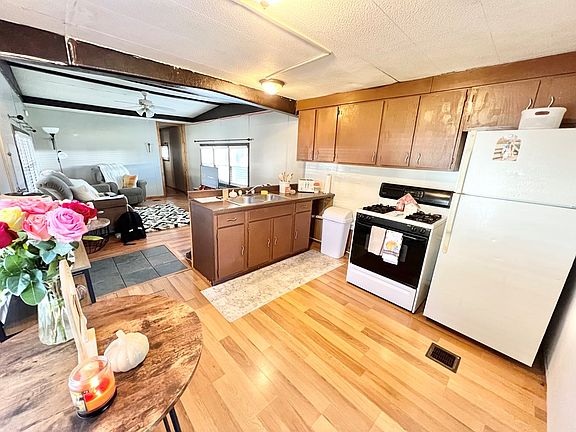 This nice single wide is located in the well maintained Emerald Isle Mobile Home Park. The trailer could be ideal for an individual or family just starting out or for folks looking to downsize. The covered front porch makes for a cozy sitting or outdoor dining area. There is a shed in the rear of the mobile home to store seasonal items. The paved two car driveway has plenty of room for parking. The open concept of the living room and kitchen allows for connectivity between hosts and guests during meal prep times. The utility room has washer and dryer capabilities. New heating system installed in 2024. The home is located close to shopping, banking and beautiful Hamlin Lake Park. Lot rent is $210 per month with an upcharge for a preapproved pet. Completion of park application and acceptance by the park owner is required. Call for a showing today!