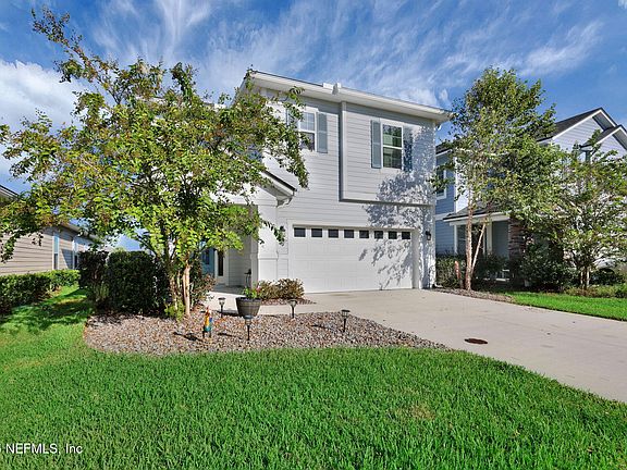 Welcome to this beautiful Vilano floor plan by Dream Finders Homes, perfectly situated on a tranquil waterfront lot in the amenity-rich community of Trailmark. Designed for both style and low maintenance, the exterior features durable Hardie board siding and a fully fenced backyard—ideal for pets or play. Step inside through the upgraded glass front door with sidelights that fill the entryway with natural light. The open staircase with elegant iron spindles sets the tone for the home's airy, modern feel. A convenient downstairs bedroom with a full bath makes the perfect guest suite. The heart of the home is the open-concept living space, where the large family room flows seamlessly into the gourmet kitchen. Home chefs will love the abundance of counter space, kitchen island, granite countertops, stainless steel appliances, and gas range. Throughout the home, you'll find thoughtful touches like added recessed lighting throughout the home, tile-to-the-ceiling in all bath wet areas, and a family room floor plug to keep cords neatly tucked away. Upstairs, all bedrooms are generously sized and raised bathroom vanities add comfort and style. The interior has been freshly painted and touched up, while the exterior was recently pressure washedmove-in ready for its next owner. Trailmark residents enjoy resort-style amenities, scenic walking and jogging paths, and even a kayak launch for weekend adventures. Located in fast-growing St. Johns County, you're just minutes from everyday conveniences like Costco and Home Depot, world-class golf at World Golf Village, easy access to I-95, and only 20 minutes to the historic charm of downtown St. Augustine. This home blends comfort, convenience, and waterfront beautyschedule your private showing today!
