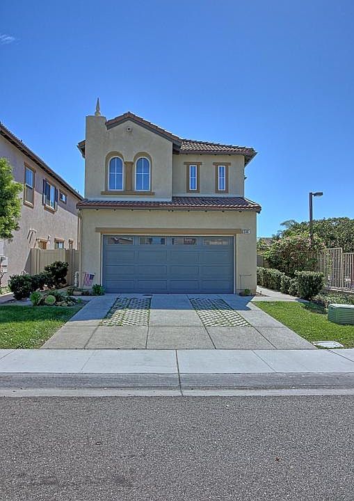 Newer FHA and VA approved home with NO Mello Roos and low HOA. This move in ready end unit home boasts of high ceilings and open floor plan. Tile through out first floor, fresh paint, some new blinds, under cabinet in the kitchen and pantry. Large master bedroom has large walk in closet and bath has dual sink and cute loft area. Private yard with no rear neighbor, planter area and beautiful fruit tree.