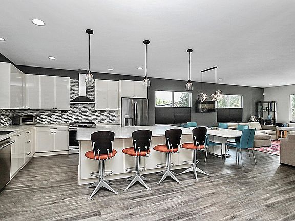 Enjoy Skyline views from the balconies on every floor. Entertain on the deck and fully fenced backyard. Wake up to the sounds of nature, while still living right by the city! Enjoy this house as a three bedroom with office or two bedrooms and two offices. The very open floor plan on the second level allows easy transition between the chef's kitchen, dining room, living room, and balcony. Gorgeous light fixtures, a funky living room wall, modern electric fireplace, and exciting guest bathroom will also have your guests raving about how cool and unique your house is.