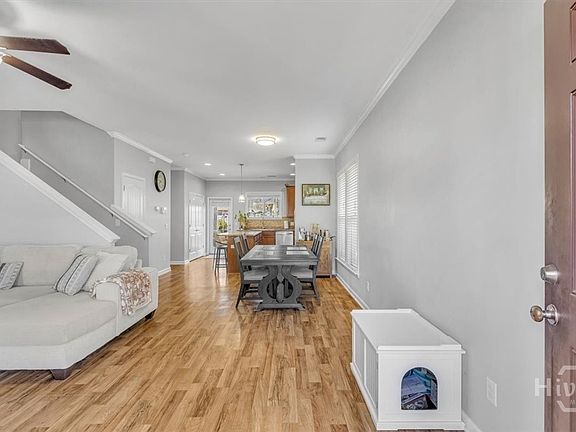 Welcome Home! 308 Gallery Way in Pooler, GA- a beautifully maintained 3-bedroom, 2.5 bath townhome offering a modern, and cozy feel with an open and functional layout ideal for everyday living and entertaining. The home features LVP flooring throughout the main living area, SS appliances, spacious laundry room WITH washer and dryer! Upstairs-3 bedrooms, 2 full baths, primary bedroom comes with a large walk-in closet, double vanity bathroom garden tub & shower. Outside you'll find a nicely covered back porch with an additional storage area. This picturesque end unit townhome is conveniently located near shopping, dining, Gulfstream, Savannah/ Hilton Head International Airport, HAAF, Ft. Stewart, and easy access to I-95. Don't miss this wonderful opportunity in one of Poolers most desirable communities.