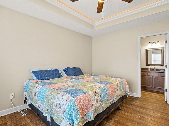 This home is the epitome of comfort meets convenience. With no stairs to speak of, all three bedrooms are easily accessible. The laundry room is located as you enter from the garage making it easy to keep any messy clothes from outdoor adventures from trailing through the house. The primary bedroom is complete with its own full bathroom and walk-in closet and is tucked away down the hall, past the kitchen. The fenced back yard offers privacy making it easy to relax on your covered patio. While the home and neighborhood has a rural feel, it is conveniently located to the new shopping plaza with Publix and other shopping, dining and medical offices nearby.