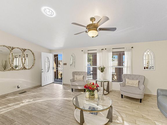 This 1,595 sq ft home offers 4 bedrooms and 2 baths with tile flooring throughout for easy care and style. The kitchen features granite countertops, a breakfast bar, and plenty of space for gathering. The primary suite includes a walk-in closet, while outside you'll find an entertainer's dream with a built-in outdoor kitchen complete with grill, mini fridge, and double oven. Enjoy relaxing on the covered back patio overlooking turf grass, perfect for low-maintenance living. Additional highlights include a covered carport, storage sheds, full fencing with backyard access, and thoughtful details that make this home move-in ready.