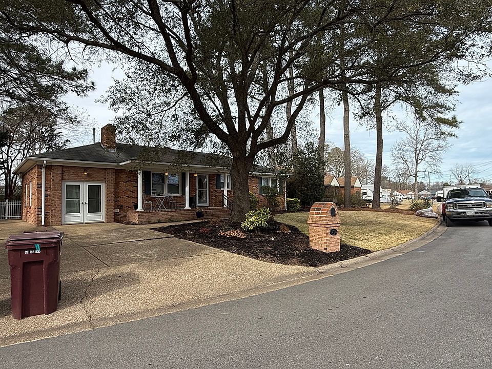 Beautiful 3 bedroom 2 bath single family ranch in a quiet safe neighborhood in Chesapeake! This home is centrally located in Chesapeake with easy access to great restaurants , schools, malls, and Naval Base. This home has been newly renovated bathroom, beautiful hardwood floors, gas fireplace, sunken den entertainment area, ceiling fans in all rooms, beautiful kitchen equipped with new stainless steel appliances, dishwasher, Corian countertops, corian backsplash, built in microwave, new sink in kitchen, gas stove, hardwood floors, built in entertainment, cherry cabinet in dining room, large eat in space for table and chairs. Backyard has garage and covered patio for grilling and entertaining. Large front porch. Beautiful yard and backyard!!