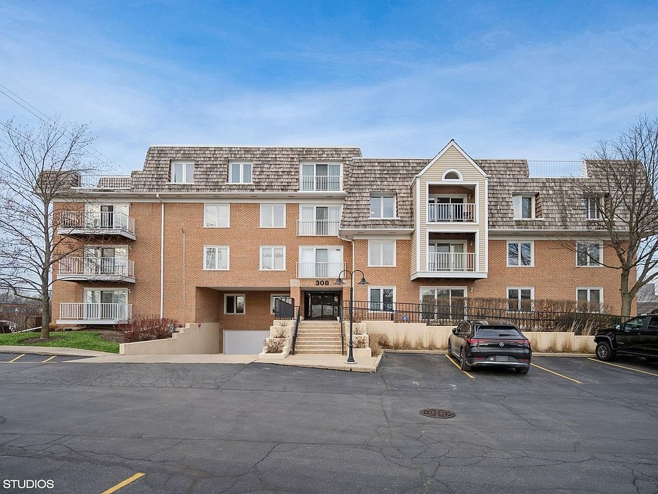 Move right in to your new condo! Beautifully appointed kitchen with newer cabinetry, granite countertops, tile backsplash, and stainless appliances. The spacious living room steps out to the tiled balcony over looking the eat facing courtyard. The large primary bedroom offers a well organized walk in closet and a luxurious bath with a whirlpool tub, separate shower, and double vanity with loads of storage. This unit has been loveling maintained and it shows! Heated garage spot and storage unit are included. Walk to Northfields shops and restaurants.