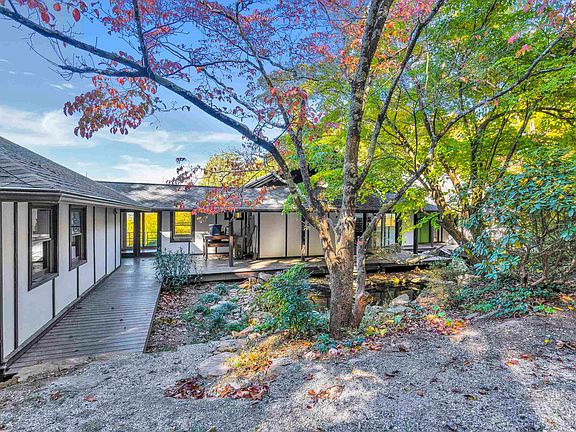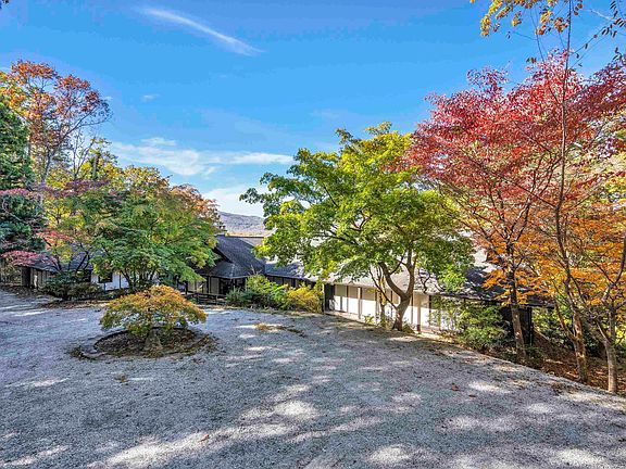 Peace and tranquility welcome you to this private mountain retreat located on approximately 11 acres complete with scenic views and an inground pool. This unique home was designed by architect, Holland Brady. The inviting front porch overlooking the water feature welcomes you home. As you step inside, you are drawn in by the open floorplan and abundant natural light. The kitchen opens up to the dining room and great room with picturesque views of the mountains and woodlands. Also on the main floor are the primary bedroom and bathroom, two additional bedrooms, two full bathrooms, an office and a flex room. In the finished walk-out basement, you will find another bedroom / bonus room and a full bathroom. The covered porches are the perfect places to relax at the end of the day or to enjoy your morning coffee. Don't miss the opportunity to put your own personal touches / updates on this home and make it your own. Home / property convey AS-IS. There is a Conservation Easement on the property. The following is an excerpt from the Conservation Easement document, "The property contains a residential area of 0.98 acres...surrounded by 9.95 acre undisturbed natural area..."