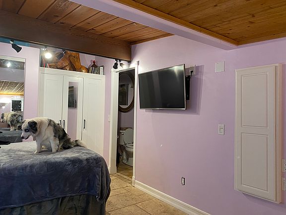Full kitchenTravertine floorsOpen floor planPine ceilings