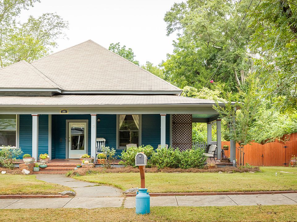 Fall in love with this beautifully updated Craftsman-style ranch just a short stroll from historic downtown! Blending classic character with modern updates, this 3-bedroom, 2-bath home offers over 2,000 square feet of inviting living space designed for comfort and charm. Step inside to find gorgeous restored original hardwood floors that preserve the home's timeless appeal, complemented by durable life-proof flooring in the primary suite and sunroom. Fresh, neutral interior paint brightens every room, while the newly painted kitchen cabinets and built-in bookcases add a touch of style and warmth. The updated kitchen backsplash and stainless-steel appliances - including refrigerator, stove, and dishwasher - make this kitchen as functional as it is beautiful. The home's traditional floor plan offers flexibility and flow with multiple living spaces - a spacious living room, a cozy den, and a formal dining room - perfect for entertaining or relaxing with family. Enjoy your morning coffee in the cheerful sunroom or unwind in the private owner's suite with updated finishes. Outside, you'll find even more to love: a large front patio ideal for gatherings, a newly built covered back deck overlooking a fenced backyard, and an exterior workshop and shed with electricity - ideal for hobbies, storage, or a small business workspace. Located on a quiet street within walking distance to shops, restaurants, and all the charm of downtown, this property offers both convenience and character. Whether you're looking for a forever home or a turnkey investment, this Craftsman gem is ready to welcome you home!