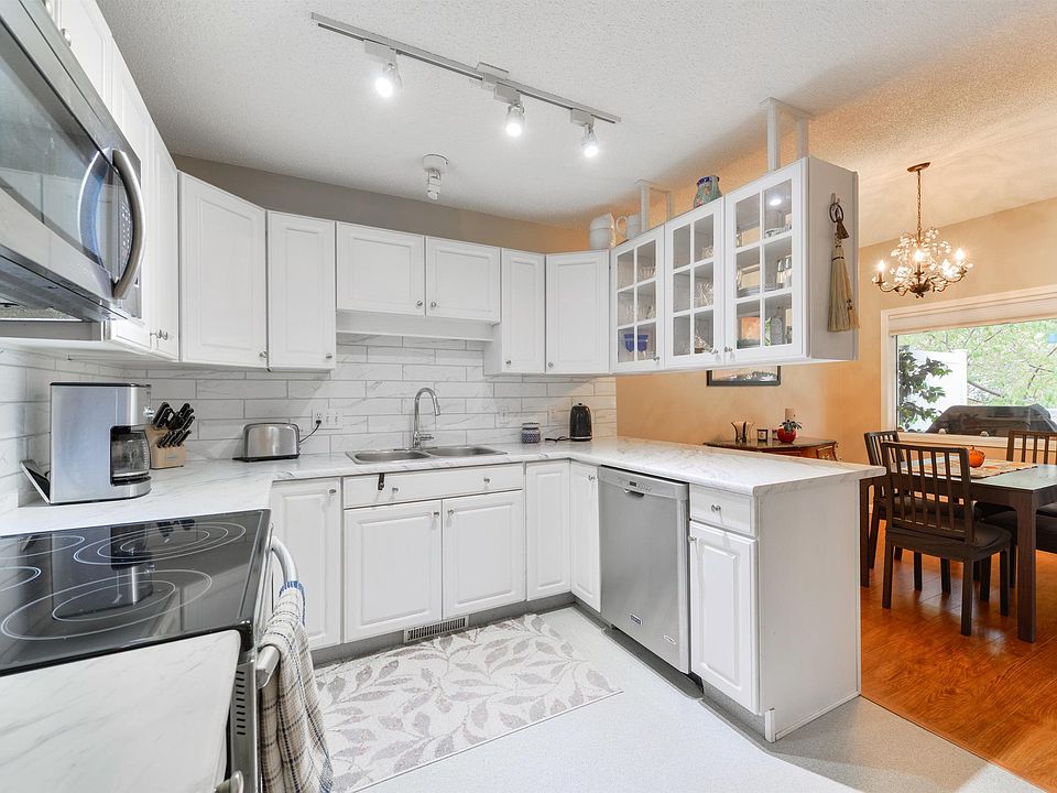 Turnkey and perfectly located, this bright 3 bed/2 bath home delivers comfort, style, and peace of mind. Enjoy air conditioning, a vaulted main living area, updated flooring, and a fully finished basement that expands your everyday living! The kitchen shines with new countertops and a new backsplash, while the big-ticket mechanicals are done: new furnace, new hot water tank, and a new sump pump. Step onto the new deck and savor worry-free living as all of the exterior is taken care of, and you won’t have to shovel in the winter or maintain any of the beautiful landscaping in the summer! The complex also features a club house for gatherings! LOVE THE LOCATION: close to golf, Annie May Park and Jackson Heights School are directly across the street, seconds to Whitemud, minutes to Anthony Henday, and Jackie Parker Rec Area is a short walk away! Close to shops and groceries for easy errands, the value and locations of this home can't be beat!