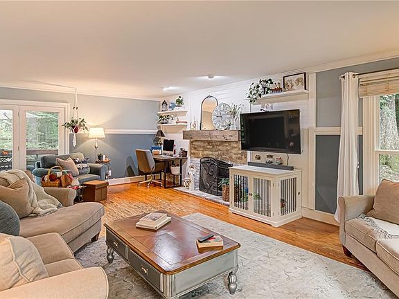Nestled in the heart of quaint Jamestown, this wonderful 4 Bedroom 3 1/2 Bath. Brick, 2 Story with Full Basement, fuses big city accommodations with small town charm just steps from access to award winning restaurants and bars. Staying home never felt more relaxing when grilling and enjoying nature (deer, rabbits, birds), and privacy on a massive wooded deck or the porch swing fire pit Inside the home offers character and charm ready for the new owners to make it their own. This home is perfect for entertaining small parties or large groups! Very large Living Room, Dining Room and Highly Functional Kitchen. Relax by the bay window with coffee and conversation. New Roof in 2020, updated plumbing, New Windows 2024, Hardwood Floors up and down, Full Finished Basement with newer LVP and Full Bath! Huge Primary with walk in closest and bath area with separate shower. Inquire about furniture market rental as well. Home will be move in ready as sellers request end of August closing.