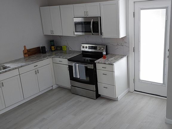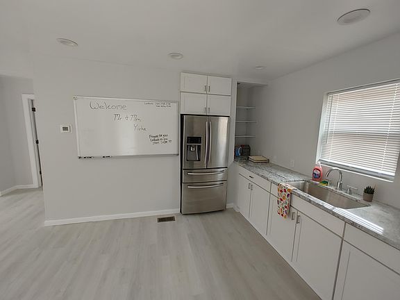 Renovated homeGranite countertopsBathroom vanityShaker style cabinetsStainless steel appliances