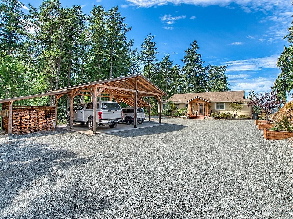 Sunny western exposure from 1800 sf, 3 bedrm 2017 Timberland Modular on 4 diverse acres with pasture, shop/barn and 2-bay local timber- framed carport. Packed with extras: Viking stainless appliances w/ propane range, airy kitchen w/ center island & walk-in pantry w/ chest freezer, engineered hardwood floors, cedar decks w/ covered porches, and fire pit for sunsets over Waldron. Features include "smart" Geo Spring water heater, heat pump/mini split AC, propane BBQ hookup, smart thermostats and autostart Generac 11kw generator. Across Kimple Lane to the east at #308 is the 36x48 Texmo heated barn/shop with 14' center door, insulated pump house, wood storage, thriving orchard and pasture/garden space. Near West Beach and Eastsound Village.