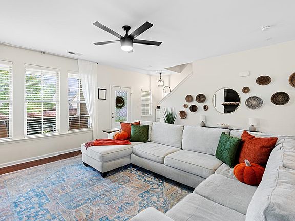 This lovely 3-bedroom, 2.5-bathroom craftsman is located in the desirable Rogers Mill subdivision and includes the primary bedroom on the main level, an elegant kitchen with island, and oak hardwoods throughout the main living areas and in the primary bedroom. 308 Lansdowne features an open layout, stylish lighting, and a gas fireplace in the living room. Located on the main floor, the primary bedroom includes a private bath with a separate tub and shower. The other two bedrooms plus a flex room can be found on the second level. Relax or entertain on the inviting patio overlooking the fully fenced in yard. Plenty of storage in the attic or attached 2 car garage. The home is conveniently close to retail, restaurants, entertainment, and schools. The community features a pool, covered pavilion, athletic fields, and more.