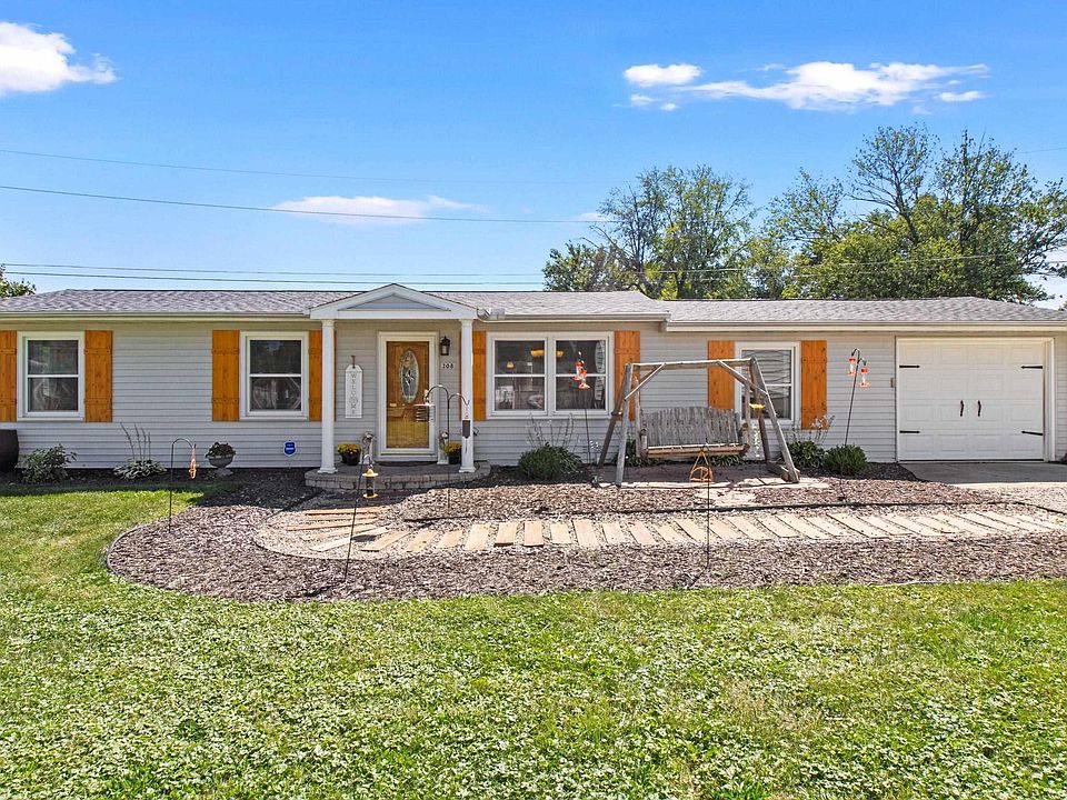 Welcome home to your 3 bedroom 2 bath ranch in Dunlap school district. You're going to love the unique layout of this home! Enter into the dining room with beautiful hardwood floors that is open to the kitchen & cute breakfast bar! Imagine cooking & entertaining with your entire family in this large kitchen loaded with cabinet space including roll out drawers, plus 2 pantries! If you prefer main floor laundry, it's already set up for your needs! The large living room leads to the fenced in backyard with outdoor playground for kids. 2 bedrooms on the main floor and a custom build oversized spiral staircase leads to the remodeled basement-primary bedroom, full bath, laundry room and living room space make for a private setting! Expensive updates including tear-off roof '21, hardwood flooring & luxury vinyl '22, blown-in insulation '21, new sump pump '19, updates in bath & kitchen '19, privacy fence '19 & main level completely repainted '22! Location is a bonus - no HOA Fees saves you $!
