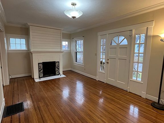 The first floor has just been completely repainted and features a living room with decorative fireplace and mantle, dining room to comfortably serve 6, and kitchen with access to back yard. Stairs have a split landing with access from both kitchen and living room. Upstairs features all three bedrooms and full bathroom. 2 bedrooms have built-in closets, the third has a wardrobe that can remain or be removed.