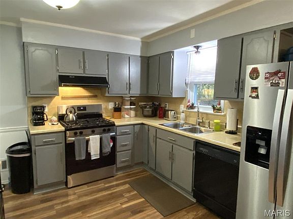 Coming soon - expected 12/3. Nicely maintained home sitting at the end of a cul de sac. Location, location. Quiet street yet close to bus lines and access to Scott AFB, all things Belleville and the metro St Louis area. The yard has plenty of space for pets or play and even a garden. Great backyard view! Open floor plan with easy care laminate flooring in the LR, Kitchen and DR. Kitchen includes the appliances for your convenience. 3BRs on the main level include wood flooring. The partial basement includes the primary BR and Bath. Great flexible space and you could have this as a family room or in law quarters because it has a separate outside entrance. It houses 2 closets. Sellers just installed a sump pump and waterproofing system (transferable warranty for small fee). Laundry area and good storage options in the walk out basement. There is a 1 car garage located in the lower level as well as additional exterior parking. Roof 8/24. Water heater 4/25. HVAC about 15 years. Range 1/2025. Refrigerator 6/25. DW about 6 years. This one is move in ready.