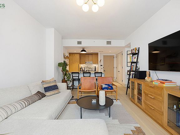 This beautiful 1-bedroom home features soaring ceilings, all day light and treetop views from floor-to-ceiling windows, 7-inch-wide plank white oak flooring, multi-zone central air, and an in-unit washer dryer.
