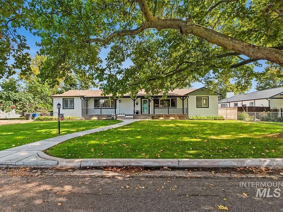 Welcome to 308 North Gem Street, a delightful 1950s ranch-style home in Nampa, Idaho. This remarkable single-level property features four spacious bedrooms and three well-appointed bathrooms, all on the main level. Enjoy the freedom of no HOA fees and the privacy this home provides. Inside, you'll find a large kitchen and dining area, perfect for gatherings and entertaining. The kitchen boasts ample counter space and abundant cabinetry, designed for both functionality and style. The beautifully landscaped yard adds to the home's charm, offering a serene outdoor space. An oversized two-car garage provides generous storage and accommodates additional needs. Ideally located, this home is close to everything you need, combining classic charm with modern convenience. Whether hosting guests or seeking a quiet retreat, 308 North Gem Street offers the perfect setting for your lifestyle.