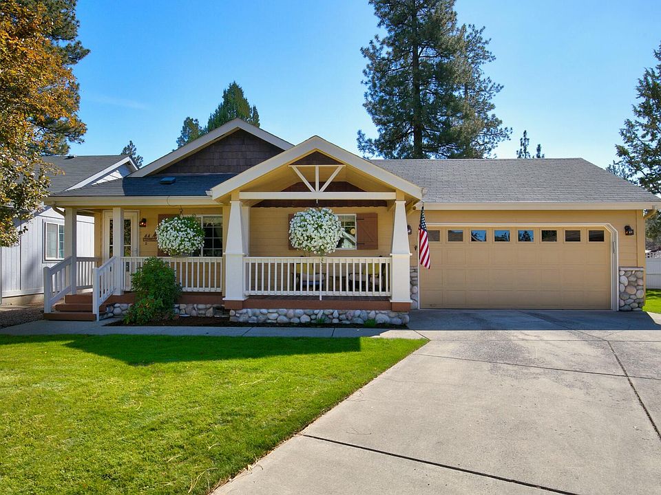 This delightful single-level home is situated in the sought-after 55+ gated community of The Pines, also known as Brooks Camp Village. Meticulously maintained and extensively remodeled, this open-concept residence is move-in ready. Ideally located just a short walk from downtown Sisters and conveniently close to two grocery stores, this home combines comfort with accessibility. Relax and enjoy your covered porch year-round. The corner lot features a generous yard with a back deck and vibrant landscaping, while the HOA takes care of all lawn maintenance and snow removal for your ease. Recent enhancements include a complete interior and exterior repainting, brand-new LVP flooring throughout, elegant granite countertops in the kitchen, upgraded indoor and outdoor lighting, as well as a new water heater and smart thermostat. You'll also appreciate the abundant storage space provided by the newly added attic above the two-car attached garage.