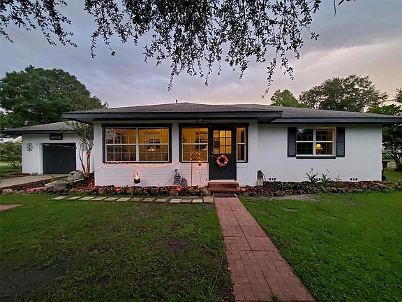Enjoy a large corner lot home with shed and very Large yard big enough for your boat, Pool or anything else you want to have with no HOA approval needed. If you don't want a pool to maintain on your own, no worries because the park across the street has an amazing pool pictured in this listing that is only a stone throw away. This Very large 2/1 home sits on a corner double lot across the street from a skate park , the pool and a nearby lake. Hardwood floors along with beautifully rich luxury wood walls are throughout the home. An enclosed breezeway through the front door has a passageway into the kitchen for entertainment could be converted into a sitting porch or sewing room or office etc. Another enclosed breezeway between the garage and kitchen is full of windows, a backdoor, ceiling fan and light for an enjoyable craft room or extra bedroom that could be established. The property is fully enclosed with a gate bearing 2 double gates and 1 single gate. On the grounds are 1 shed in the with a single swing set. Roof: 2006 A/C: just updated last year to a larger unit. Electrical panel: early 2000. home was painted in the last two years inside and out. Washer and Dryer and extra fridge staying with property. Updated Kitchen was newly remodeled with updated appliances in the last two years. Flood lights are on all corners of the home. Buyers to verify all measurements. This is a solid base home that needs nothing but another family. Come see this property as it wont last at the current price!