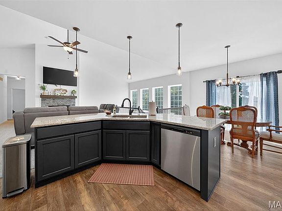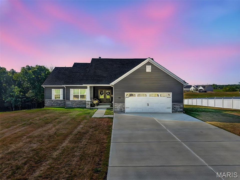Don’t wait for new construction—this brand-new 3 bedroom, 2 bathroom ranch home offers modern living just an hour outside of St. Louis! The open floor plan boasts a spacious kitchen with stainless steel appliances, a walk-in pantry, and a butterfly island perfect for entertaining. Enjoy the cozy living room with a wood-burning fireplace, atrium windows, and easy access to the oversized covered porch with double-door entry. The luxurious master suite features a walk-in closet, dual vanities, a soaker tub, and walk-in shower. Downstairs, the finished atrium walkout leads to a patio and covered gazebo overlooking an oversized lot with trees and common ground. With an over sized 2-car garage, main floor laundry, and peaceful rural setting, this home checks all the boxes! Showings start on Monday!