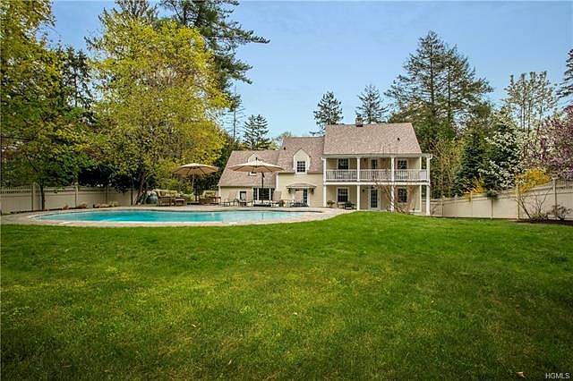 Lovingly maintained & updated 4-bed/2.1-bath Village Colonial w/beautiful in-ground pool & yard within walking distance to train, town, shops & school. Living room w/fireplace & French door to covered terrace. Dining room w/French doors to patio. Paneled library. Extensive detailed moldings. Kitchen w/new flooring, stainless appliances & adjoining breakfast room. Master w/bath ensuite & private covered balcony. Three additional bedrooms. Updated hall bath. Unfinished lower level w/laundry, storage, mechanicals & utilities. Central A/C upstairs only. Attached 1-car garage w/main level access. Carport. Pretty landscaping. Notable improvements: new flooring, boiler, washer, refrigerator/freezer & interior lighting (2019); new hardiplank siding, roof, shutters, doors, balcony, covered terrace, exterior lighting, dryer, canine electric fence & generator transfer switch (2016); new pool surface & tiles (2013); new pool heater, pump, filter, decking, patio & rear yard fence (2012). A gem!
